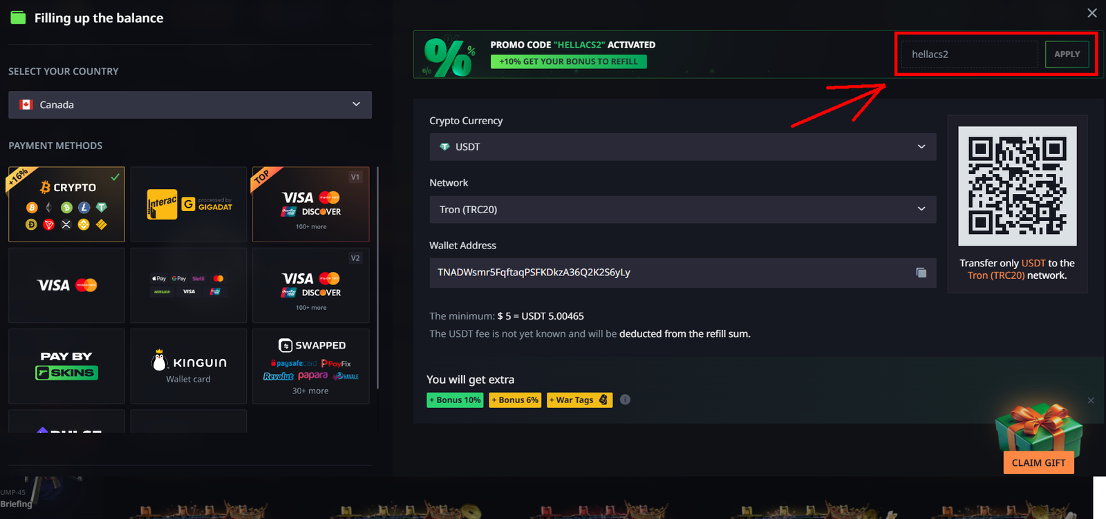You can enter the code from most regions, but payment options, bonuses and withdrawal rules can differ. Some countries limit access to third-party skin gambling platforms or specific payment methods, so always check the current terms that apply in your location.
